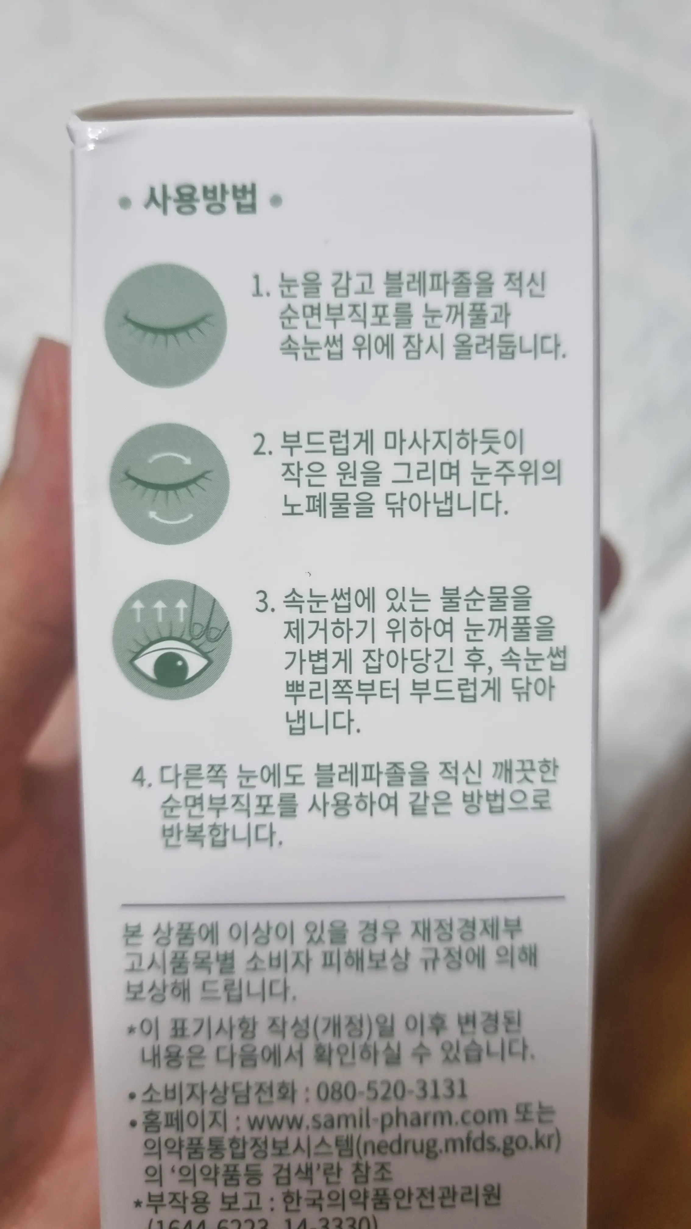 저는 하고 잠이 들어버리는데, 안구건조증을 조금이라도 완화시키도록 사용 후 눈꺼풀 청소를 하는 것을 권장합니다.
