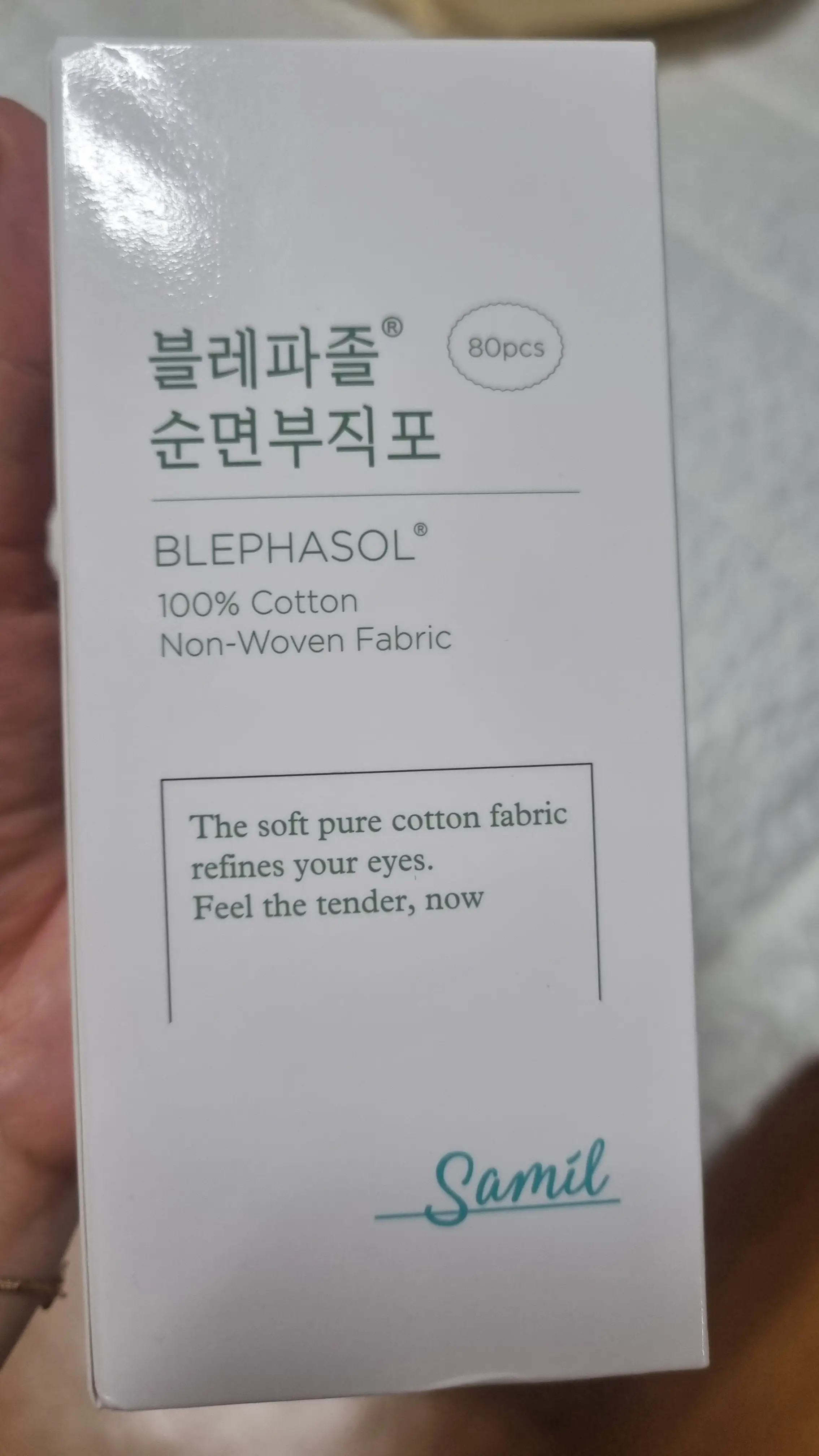 지금 쓰고 있는 모델안 아래 blephasol 용액과 순면부직포 세트인데요.