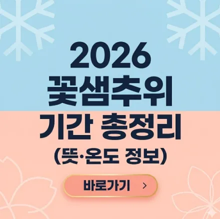 2026년 꽃샘추위 기간과 뜻, 평균 온도 등 봄철 불청객인 꽃샘추위의 모든 정보를 정리했습니다. 건강 관리와 옷차림 팁까지 확인하여 따뜻하고 건강한 봄을 맞이하세요.