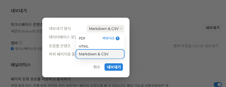 노션에서 전체 내 글 파일다운로드, 엑셀, pdf 다운로드하기
