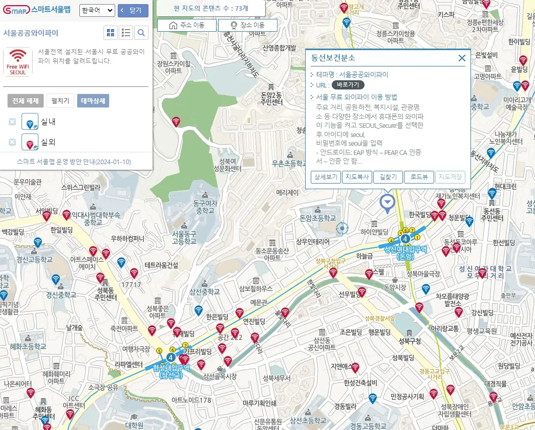 서울시는 시민 누구나 편리하게 인터넷을 이용할 수 있도록 다양한 장소에 공공 와이파이를 설치했습니다.
