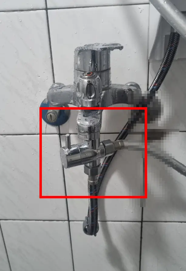 왼쪽으로 나가는 회색선이 샤워기선으로 연결, 아래로 나가는 선은 세면기 수전 선을 연결한거에요.
