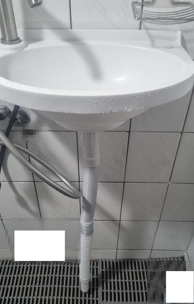 그리고 바닥으로 바로 떨어지는 수도꼭지에 샤워기 연결했습니다.