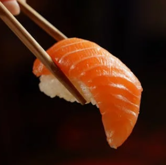 - 훈제 연어 혹은 생연어를 한 입 크기로 썹니다.