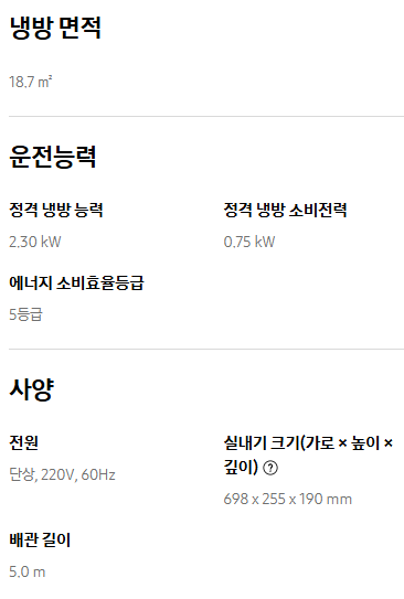 - 냉방 면적: 18.7㎡ (약 5.6평)