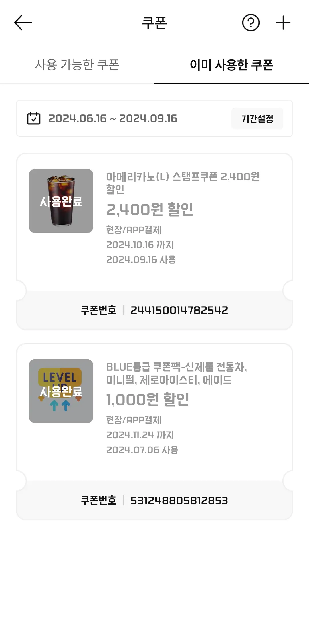 스탬프 찍은 게 9장이 있어서 그걸로  2400원 커피쿠폰으로 변경해서