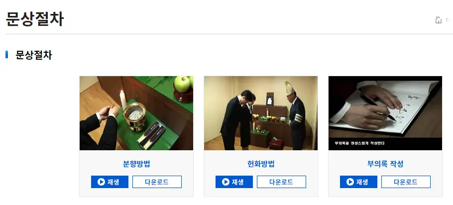 [아래 문상절차 이미지를 클릭하시면 한국장례협회에서 제공하는 동영상을 확인하실 수 있어요]