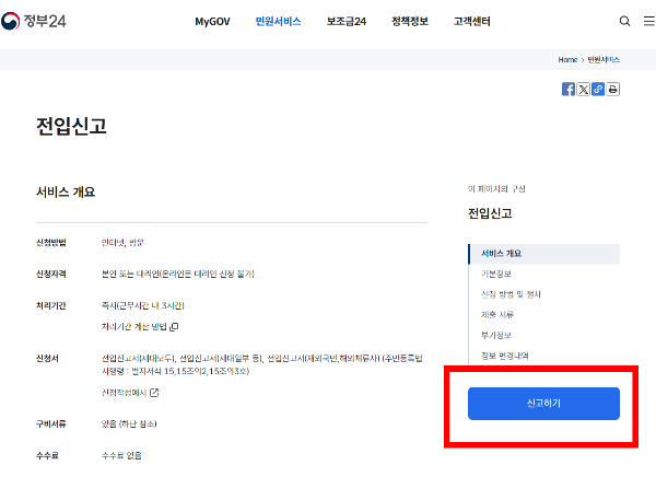 정부24사이트 검색창에 [전입신고]라고 검색해주세요.