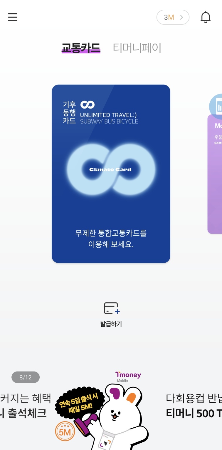 첫번째 카드에 기후동행카드라고 나옵니다.
