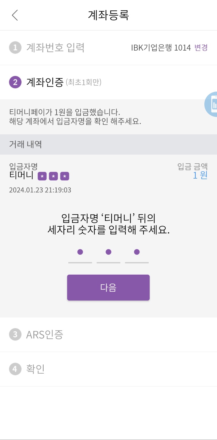 계좌번호와 은행을 입력하면 계좌 인증이 나옵니다.