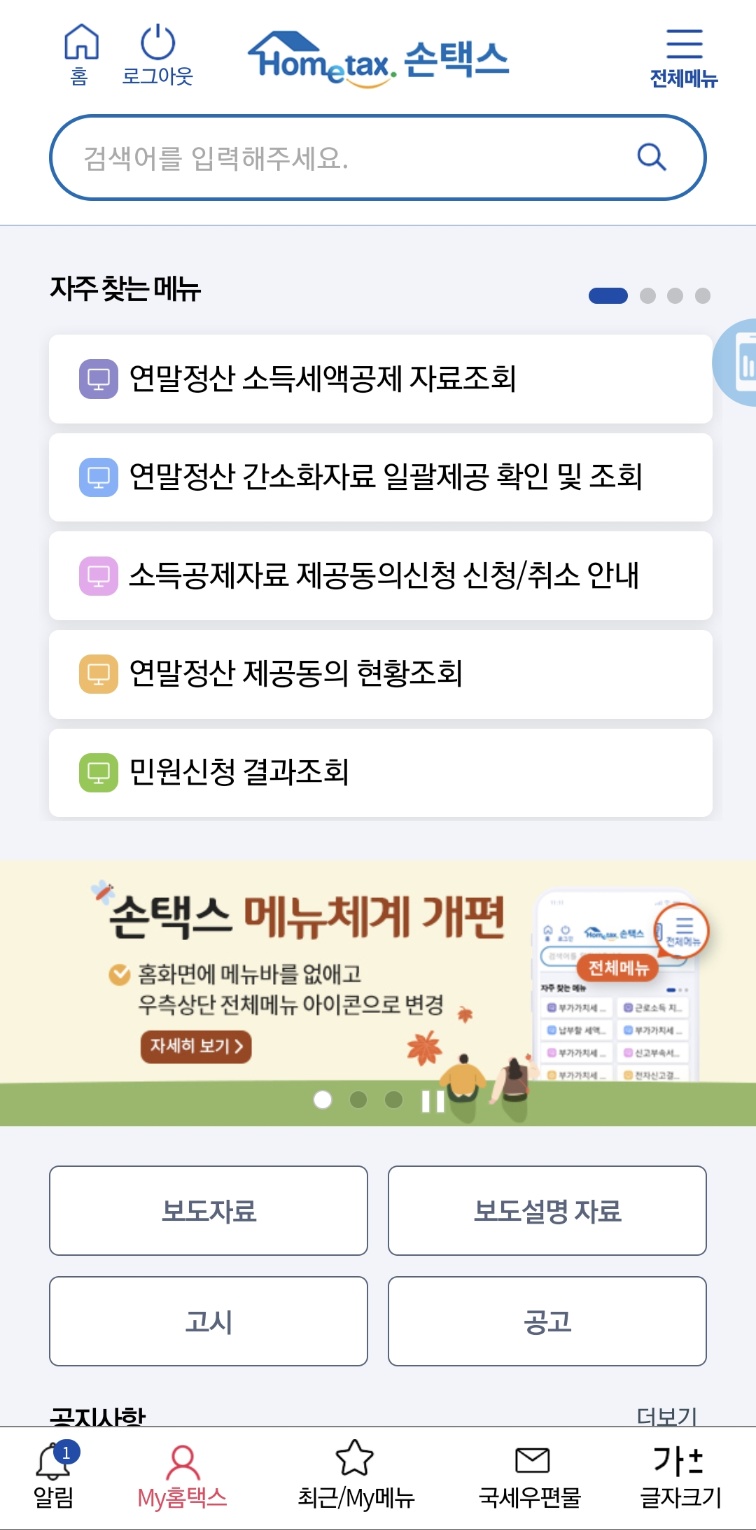오른쪽 상단 전체 메뉴를 눌러주세요