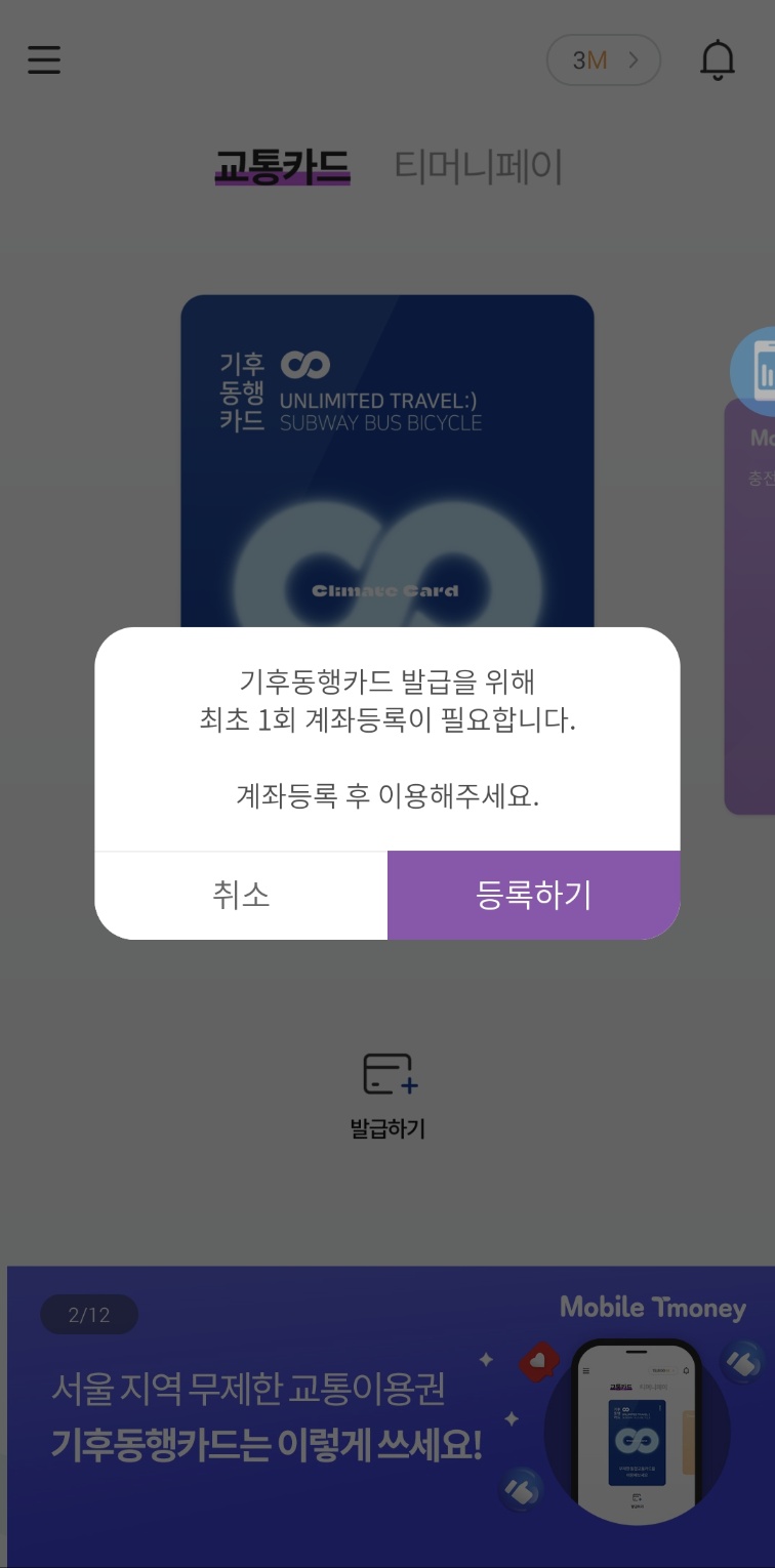 이제 다시 기후동행카드 발급을 눌러봅니다.