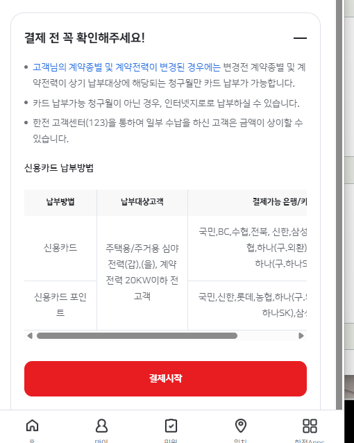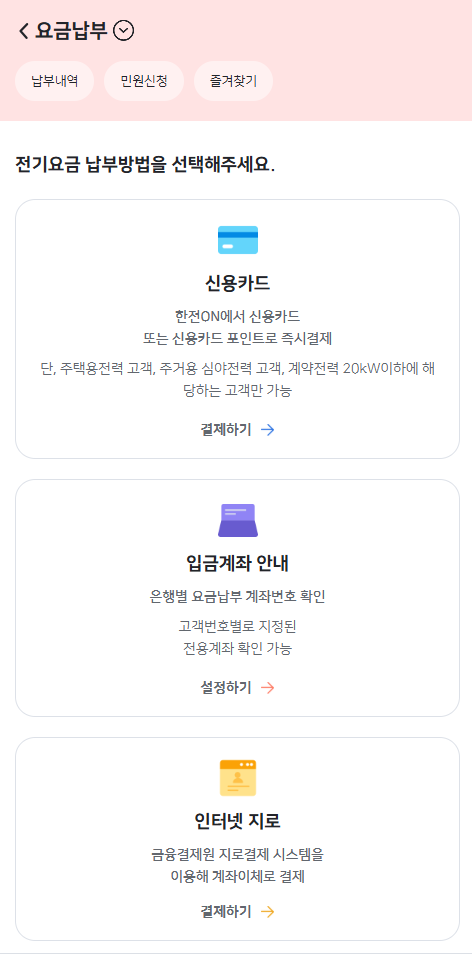 한전 on 접속 (https://online.kepco.co.kr/) -> 요금납부 선택