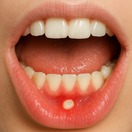 • 단순 아프타성 구내염: 흰색·노란색 중심, 붉은 테두리