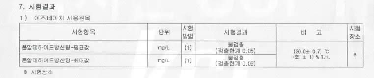그리고 중요한 거. 가구접착제로 많이 사용되는 포름알데하이드가 불검출 된 시험결과도 사이트에 올라가 있다.