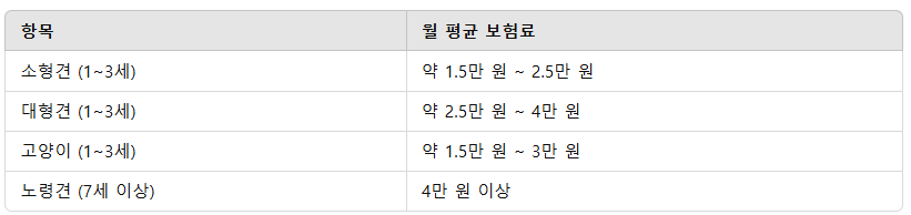 보험료는 반려동물의 연령, 품종, 보험사별 보장 범위에 따라 다릅니다.