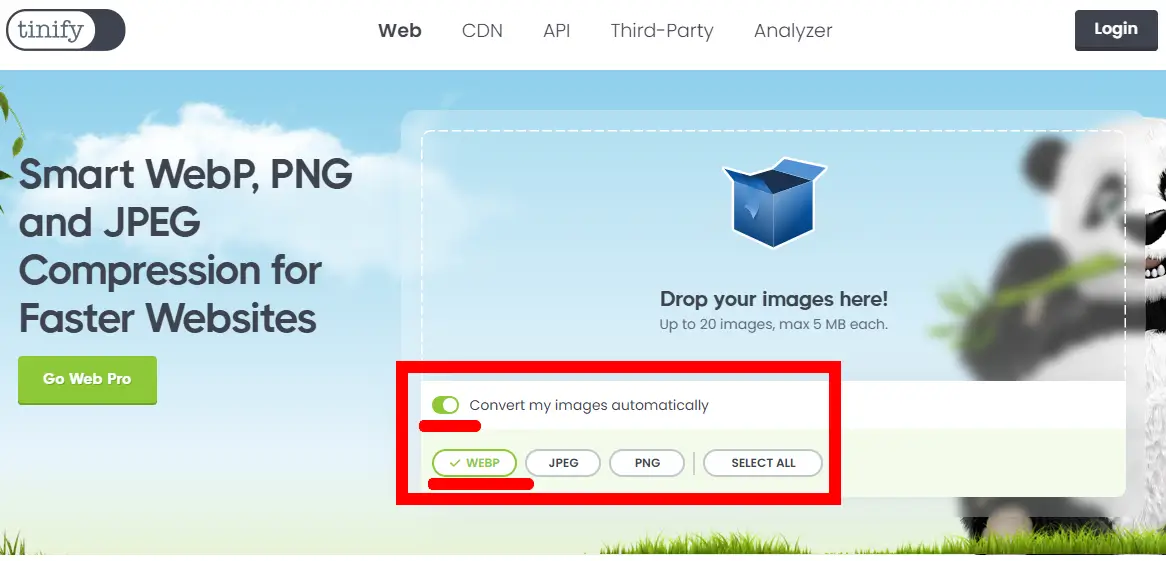 JPG JPEG PNG WEBP 변환, 이미지 파일용량줄이기 Tinypng
