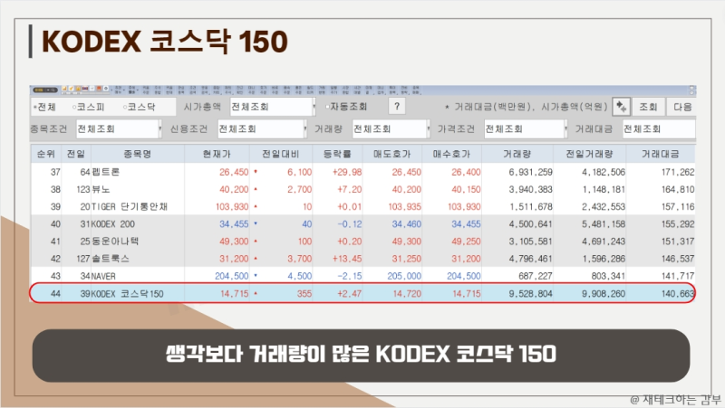 KODEX 코스닥150은 일평균 거래대금이 수백억 원대로